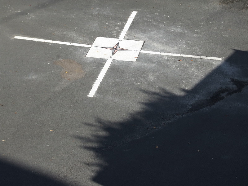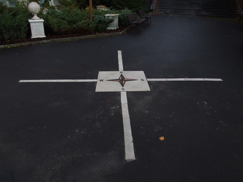 The place where the compass rose is placed has the followinggeographic coordinates: